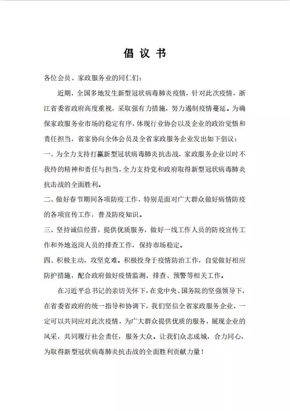 案,給當(dāng)?shù)仄髽I(yè)樹立榜樣。麗水市家協(xié)于1月25日就通知每一家會員企業(yè)負(fù)責(zé)人,篩查本企業(yè)是否有湖北籍或來自疫區(qū)的員工,并逐一通知,請其在疫情結(jié)束后再返回崗位,全市家政企業(yè)也都根據(jù)政府部門規(guī)定延遲了開業(yè)時間。