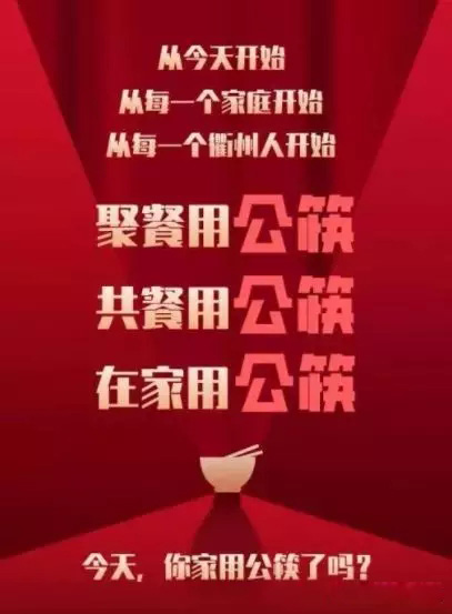 從今天開始,熊每一個(gè)家庭開始,從每一個(gè)家政人開始,我們要以身示范,向身邊親朋好友宣傳使用公筷公勺, 影響身邊越來越多的人形成用公筷公勺的意識(shí)。