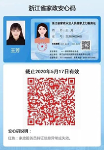 根據(jù)浙江省商務(wù)廳印發(fā)的《關(guān)于在全省范圍內(nèi)推廣實(shí)施家政“安心碼”的通知》,浙江省家政“安心碼”采取全省統(tǒng)一格式、各市分別制作、授權(quán)省市家政行業(yè)協(xié)會(huì)發(fā)放的形式推廣實(shí)施,為兼顧部分不適應(yīng)使用線(xiàn)上碼家政從業(yè)人員需求,允許備份使用“居家上門(mén)服務(wù)證”,“碼”與“證”具有同等效力。